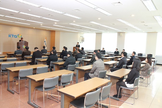 2013년 12월 31일 KTGO연협중앙회는 8층 대회의실에서 전임․직원이 참석한 가운데 2013년도 종무식을 가졌습니다. 이해권 중앙회장은 종무식에서 2013년도 한 해 동안 애쓴 직원들의 노고에 감사드리고 국가적으로도 많은 변화와 개혁으로 혼란스럽고 어려움을 겪고 있고 우리 KTGO 연협도 지속적인 면적 감축 등으로 많은 어려움을 겪고 위기가 닥쳐오는 만큼 전임․직원이 면적 확보에 총력을 기울여 줄 것과 2014년 갑오년 말의 해 말처럼 힘차게 업무에 정진해 줄 것을 당부하였습니다. 이어서 정종수 전무이사는 종무식 인사말을 통해 지난 한 해 동안 애써주신 임직원들의 노고에 대한 격려의 말씀과 금년 한해 힘들었지만 우리 조직에 희망이 있는 걸 보았다고 말하며 그 희망을 가지고 갑오년 한해를 맞이 할 수 있도록 하자고 말씀하셨습니다.