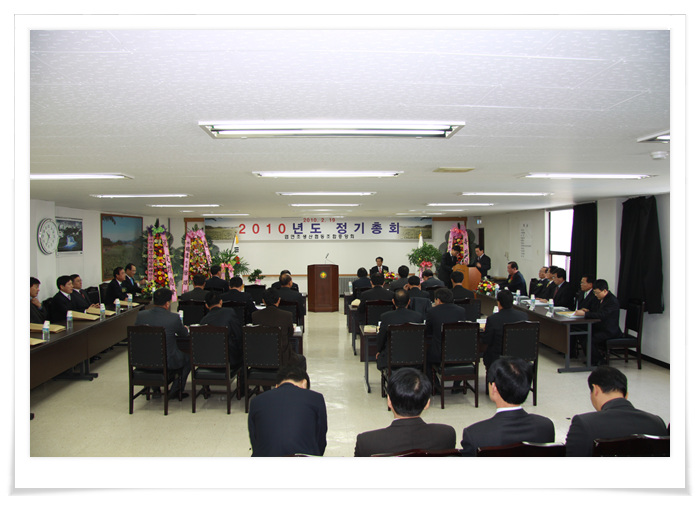 2010년도 정기총회(의장:박영환)를 2010년 2월 19일 중앙회 회의실에서 안정화재단 전복조 이사장과 KT&G원료관리실 장재식 실장이 내빈으로 참석한 가운데 기념식과 의안 결의까지 무사히 마쳤습니다.