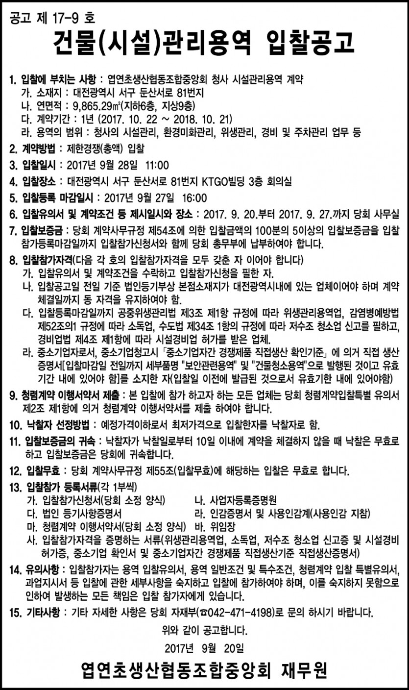 KTGO청사 시설관리용역 입찰공고 > 공지사항