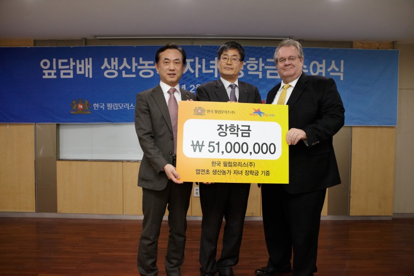 한국필립모리스는 지난 10일 서울역 대회의실에서 한국필립모리스와 미래의동반자재단이 함께 하는 잎담배 생산농가 자녀 장학금 수여식을 열고 장학생 30명에게 장학금 5100만원을 전달했다.