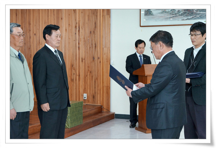 2013년도 4월 3일 11:00 KTGO중부연협 회의실에서 KTGO연협중앙회 이해권 회장은 중부지역 수상자(임․직원 및 조합원)를 대상으로 기획재정부장관 표창전수식을 가졌습니다.