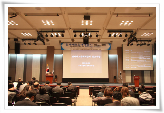 2009년 11월 11일 14:00 서울 프레스센터 국제회의장에서 「맑은공기건강연대」와 「담배없는세상연맹」이 주관하는 담배제조 및 매매금지 심포지엄이 있었습니다.