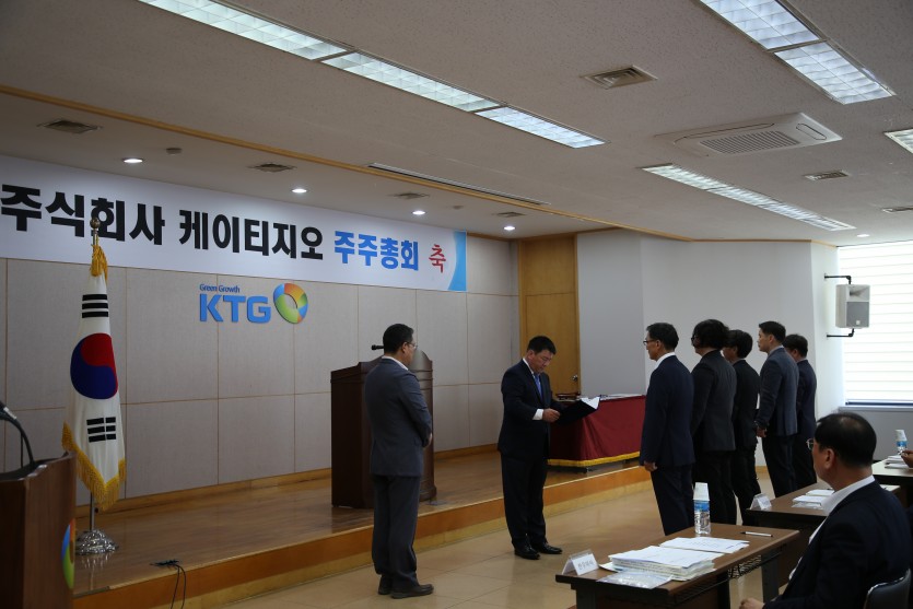 (주)케이티지오 서진의 제21기 정기주주총회(2020년 5월 26일 10시)와 (주)케이티지오 농업회사법인의 25기 정기주주총회(2020년 5월26일 11시)를 엽연초생산협동조합중앙회 8층 회의실에서 개최하여 사업실적 및 결산을 확정하였습니다.