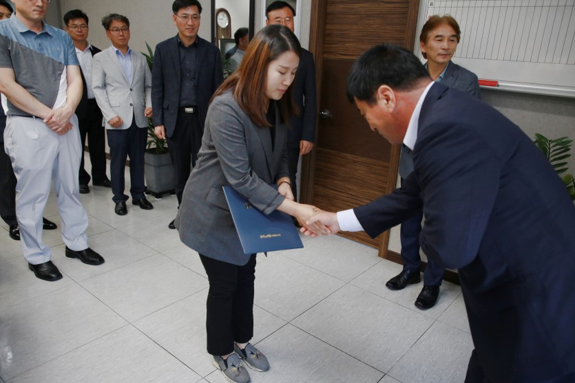금일 15시 중앙회장실에서 10월 1일자로 부임하는 박성희 직원에 대한 임용장 수여식이 있었다.