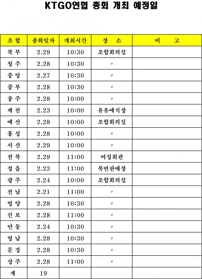 KTGO연협 정기 총회 예정일 공지 > 공지사항