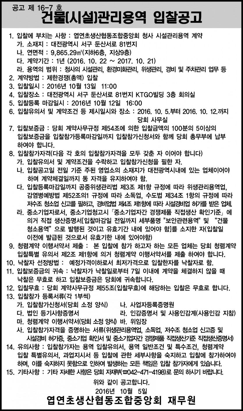 KTGO청사 시설관리용역 입찰공고 > 공지사항